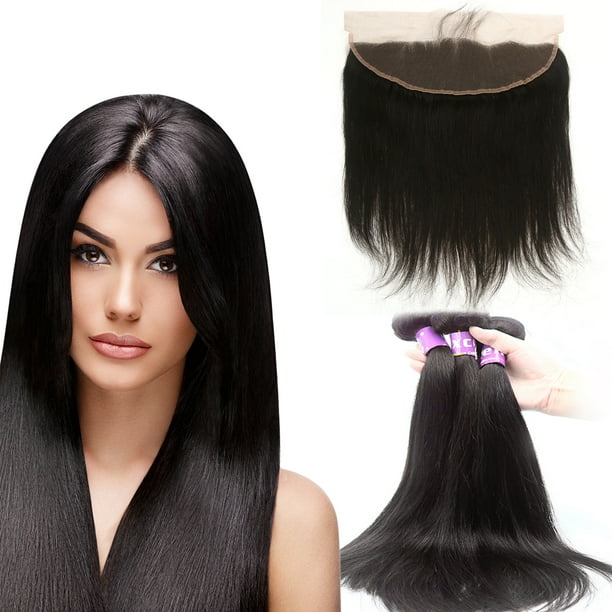 Human Hair Virgin Straight 12 30 3 Bundles 13x4 Frontal Lace Closure Free Part 8a Brazilian Weave Extensions Walmart Com